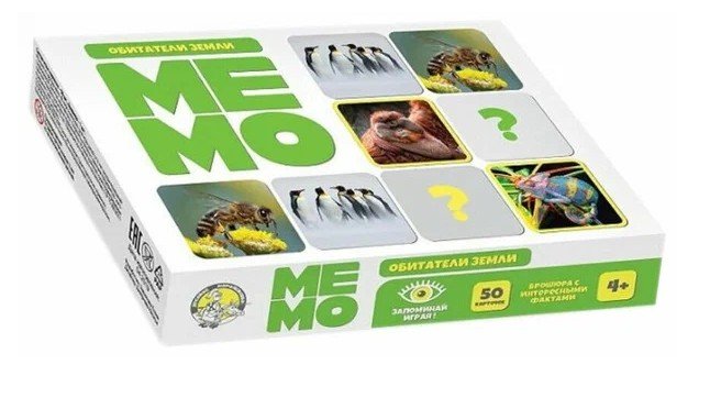 Соберите наибольшее число парных карт с одинаковыми изображениями и познакомьтесь с удивительными фактами о самых невероятных обитателях Земли! Состав игры: • карточки – 50 шт. • брошюра с интересными фактами 4+