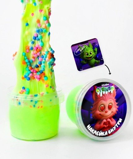 Слайм "Стекло" Butter 55 гр Зеленый цвет, с шариками и наклейкой внутри 00-00512627 3+